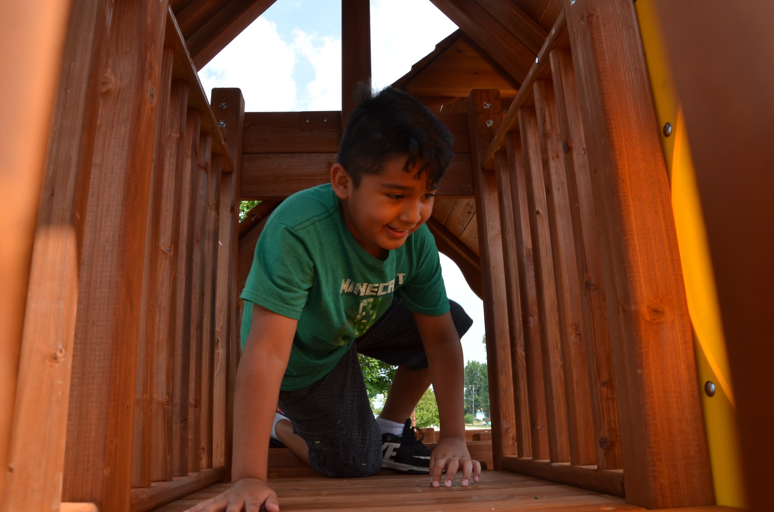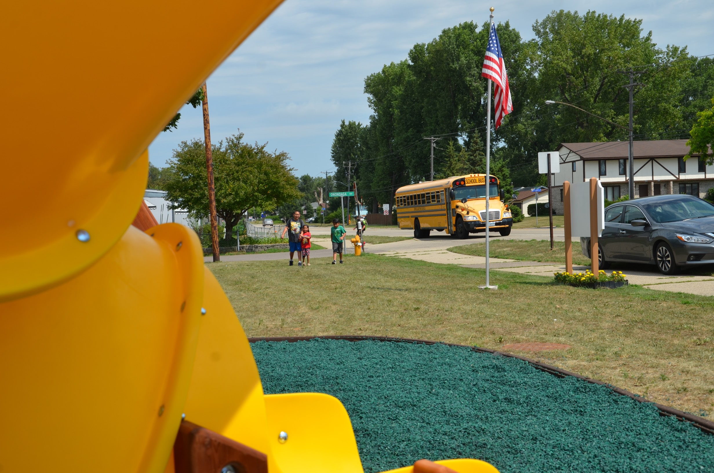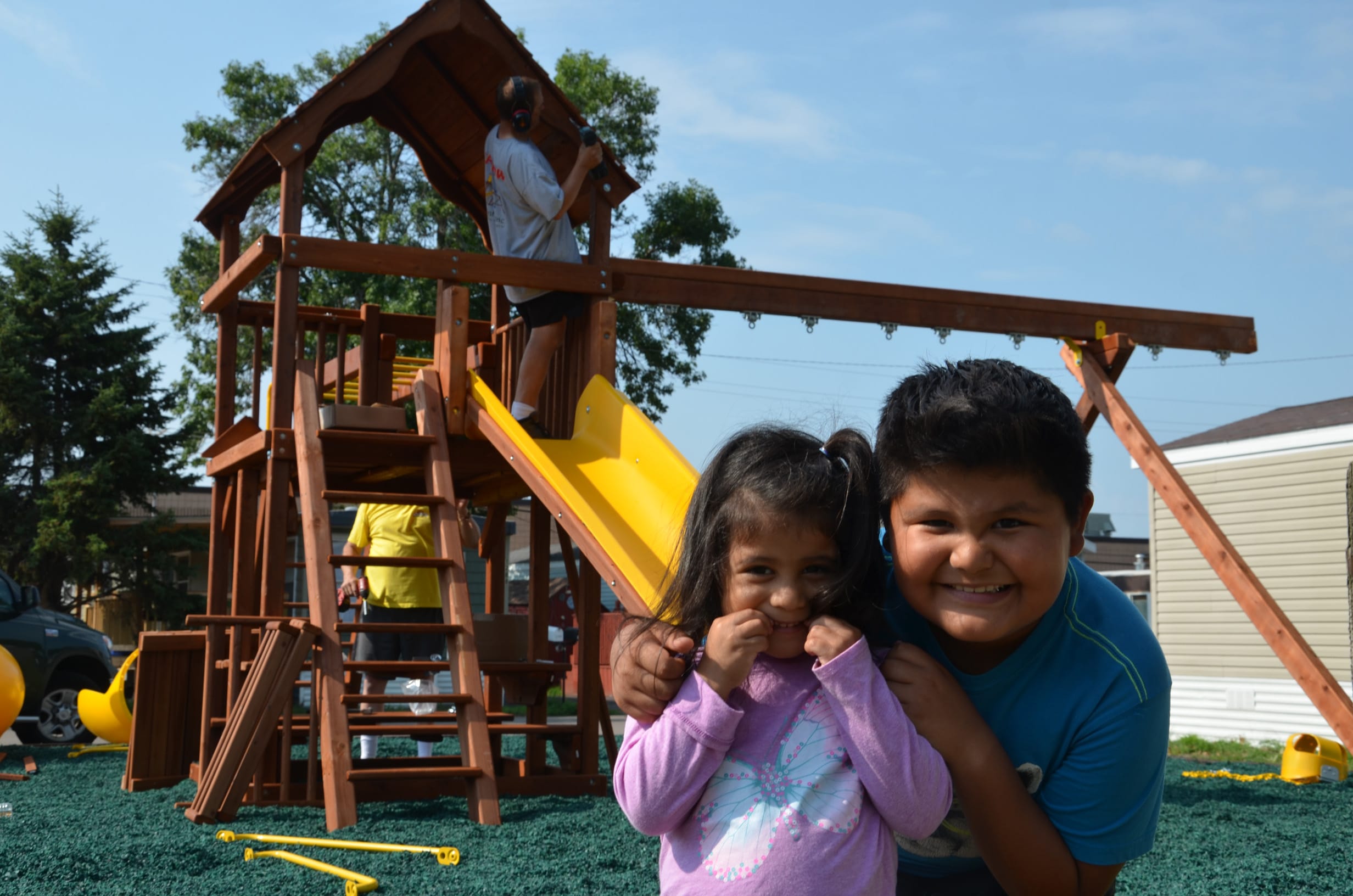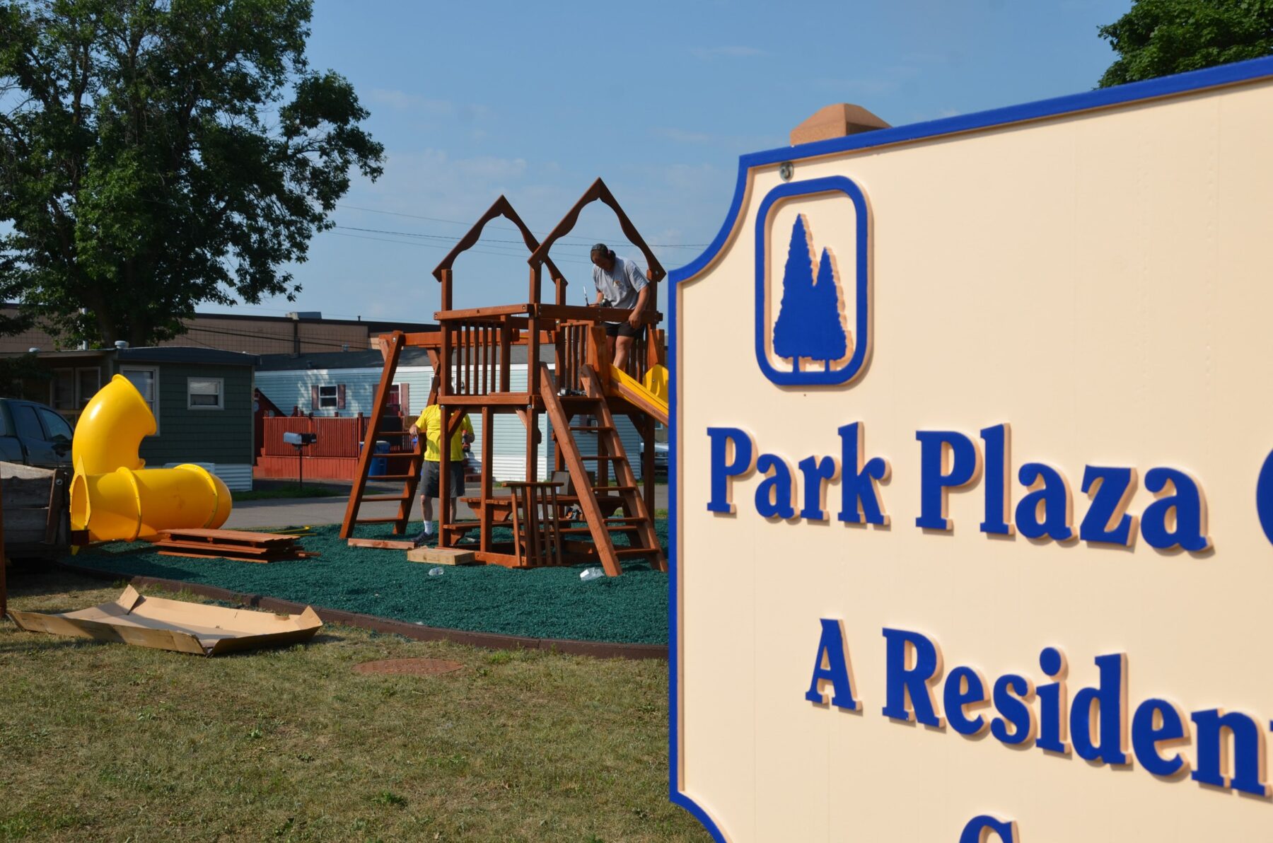 FRIDLEY, MINN. – A bunch of kids from Park Plaza Cooperative boarded a bus for day camp last week only to return a few hours later to find a playground set up and ready for climbing, swinging and sliding.