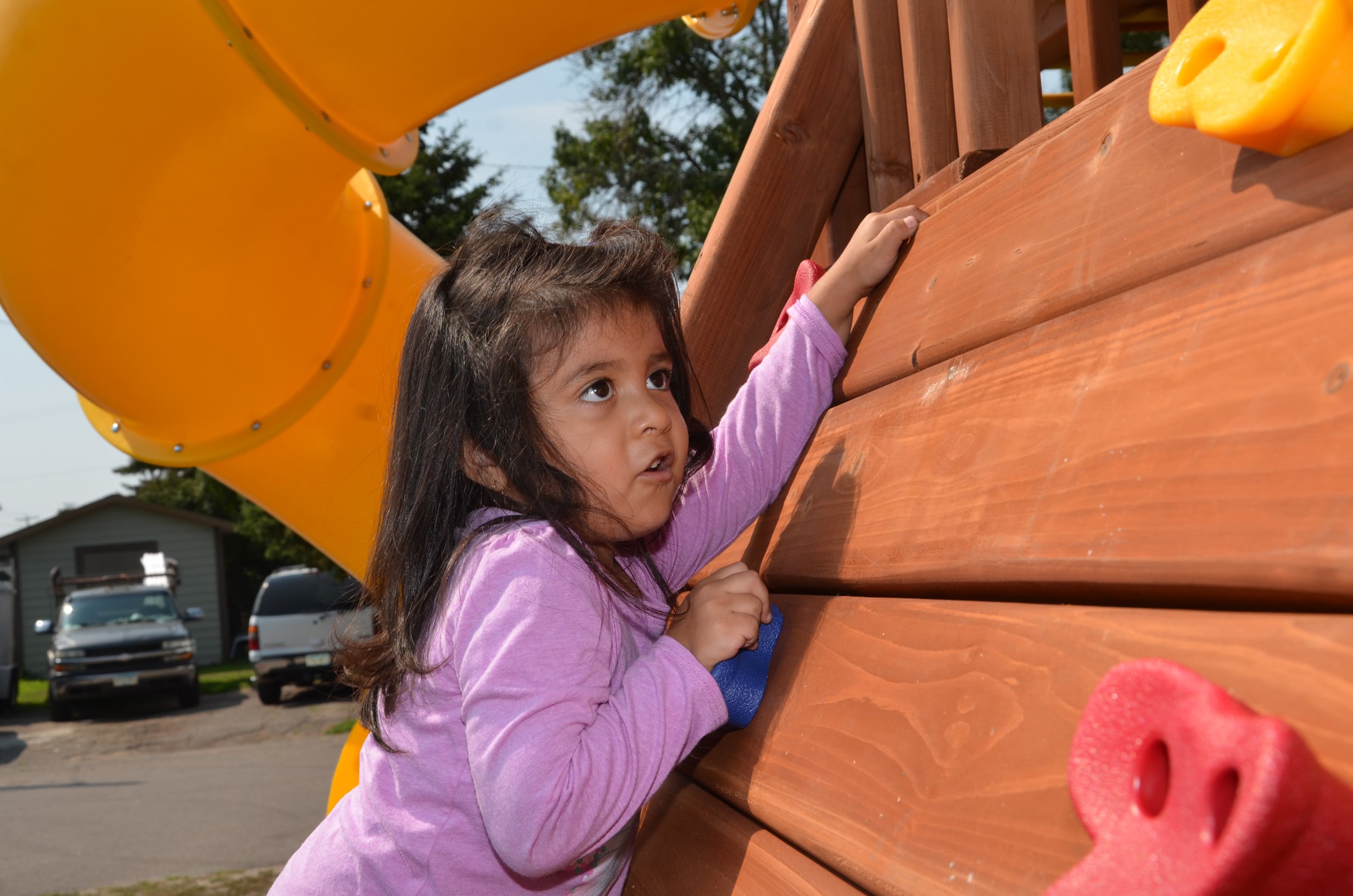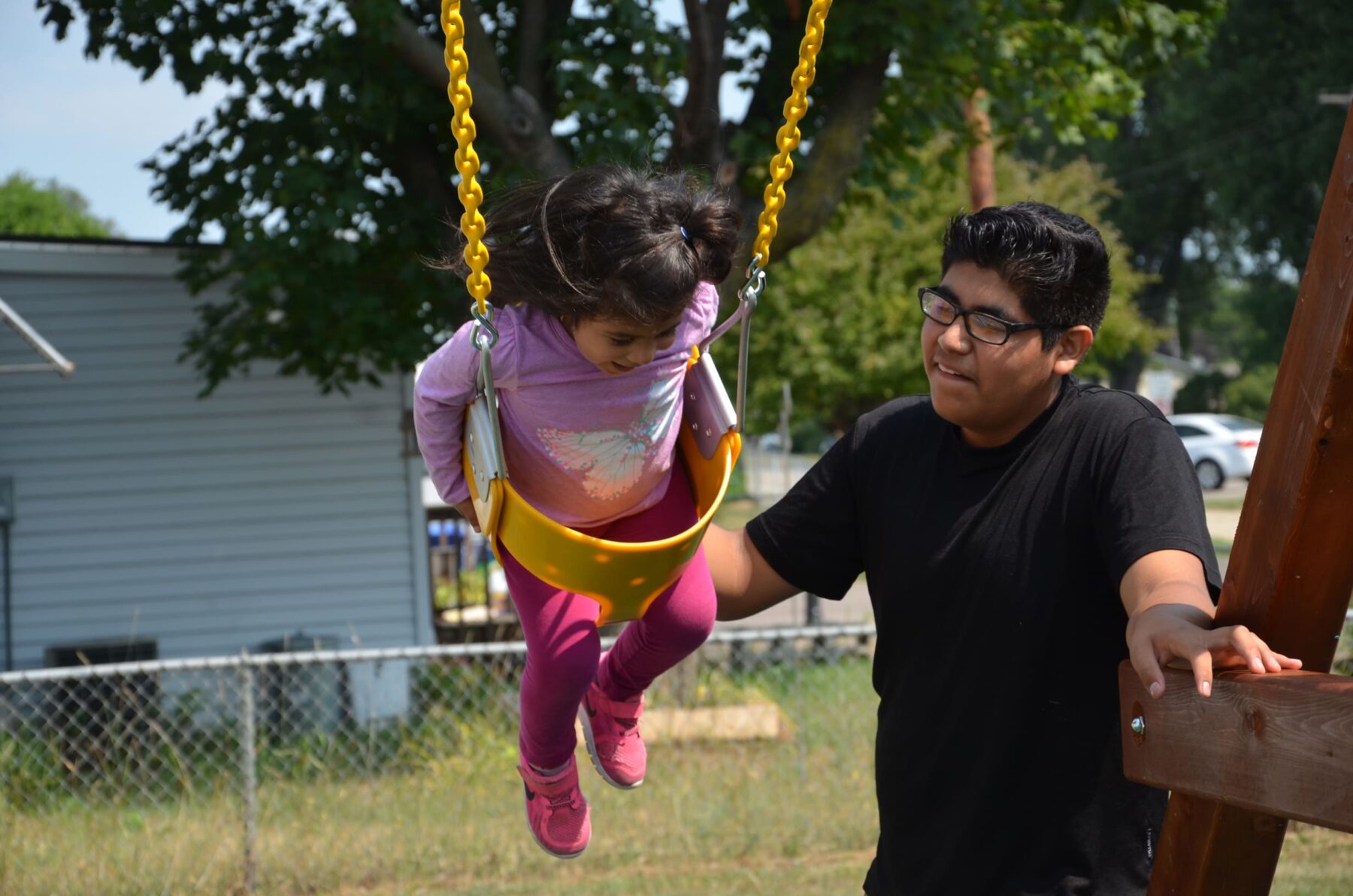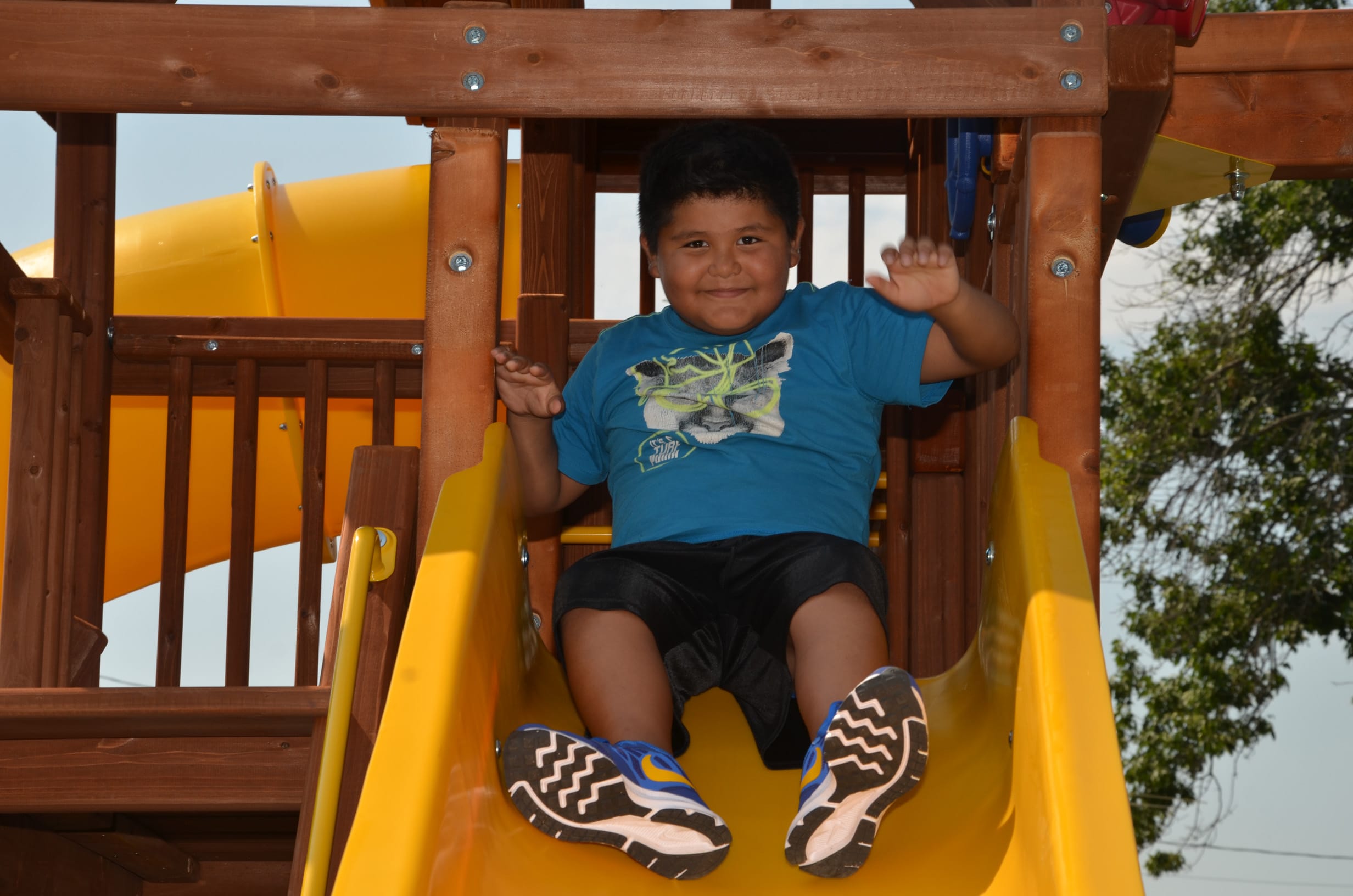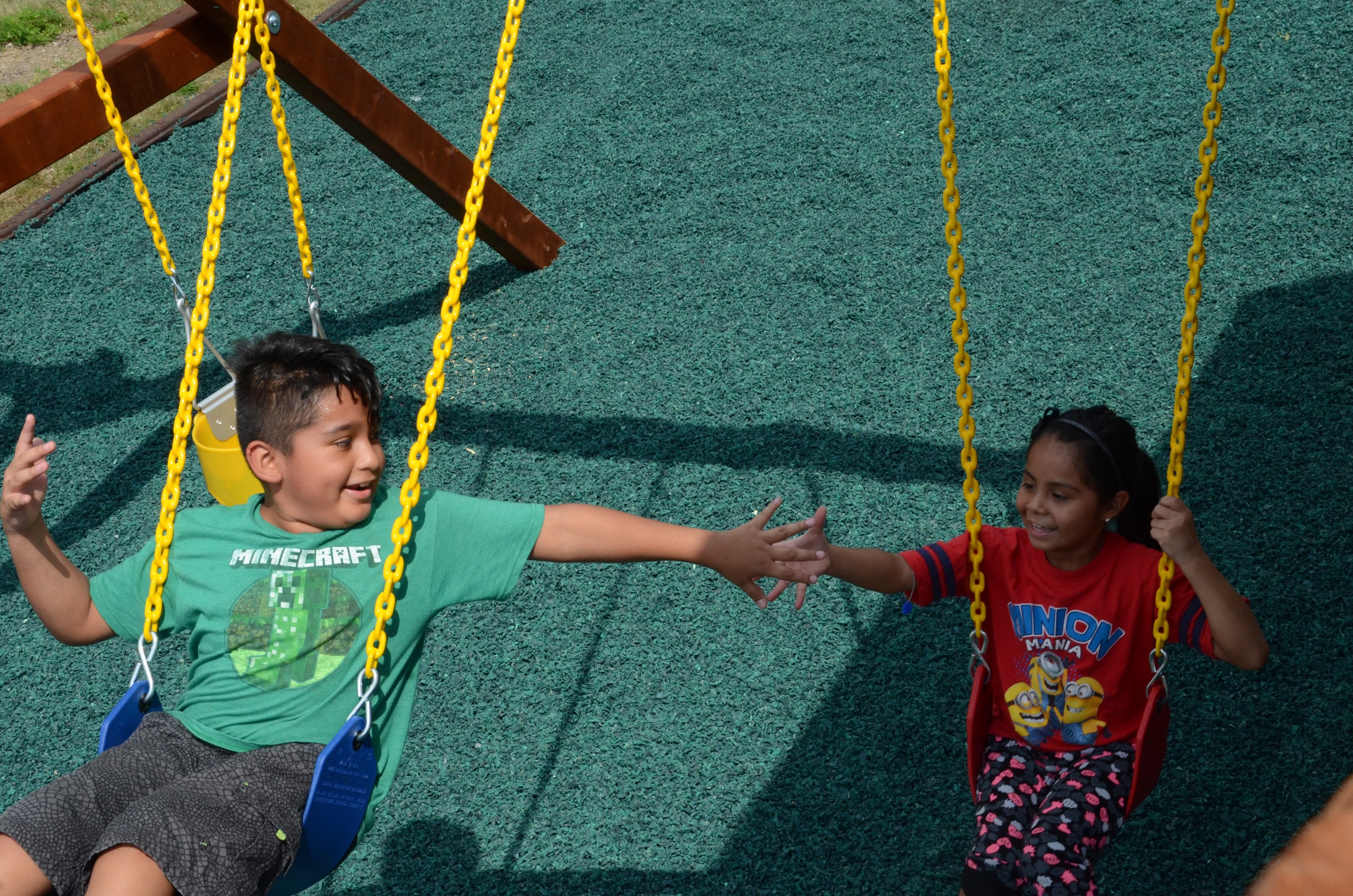 “This is great,” he said, adding that none of his friends outside Park Plaza have something so close to home. His smile spoke of his excitement as he took the inaugural ride down one of the two slides before dutifully helping his younger sister into a swing and down the curly slide.